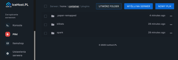 - Otwórz folder plugins znajdujący się w katalogu głównym serwera