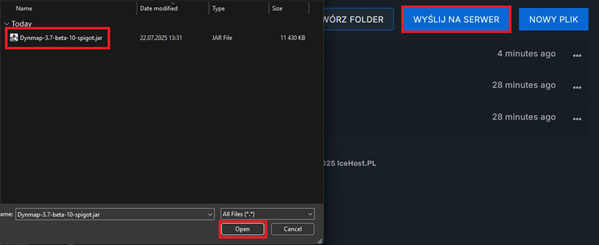 - Kliknij przycisk „Wyślij na serwer" i prześlij pobrany plik