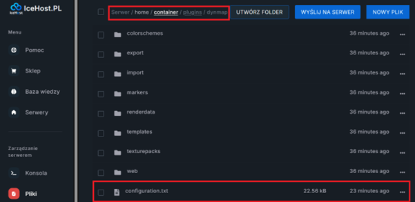 plugins, następnie do folderudynmap - Odszukaj plik konfiguracyjny configuration.txt i otwórz go